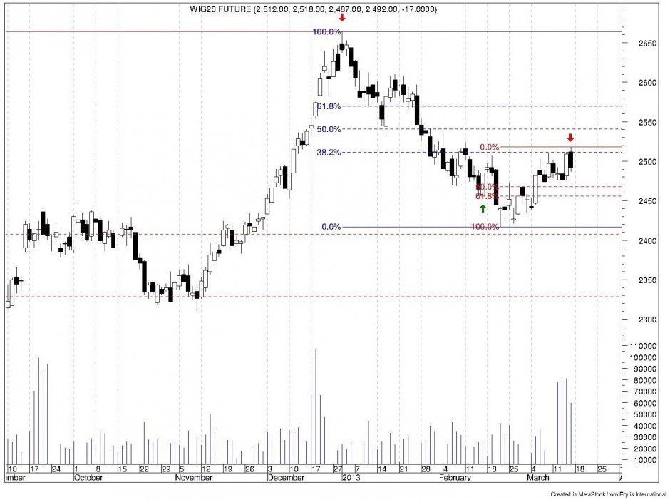 Analiza techniczna i prognozy dla kontraktów terminowych na WIG20; 17 marca 2013