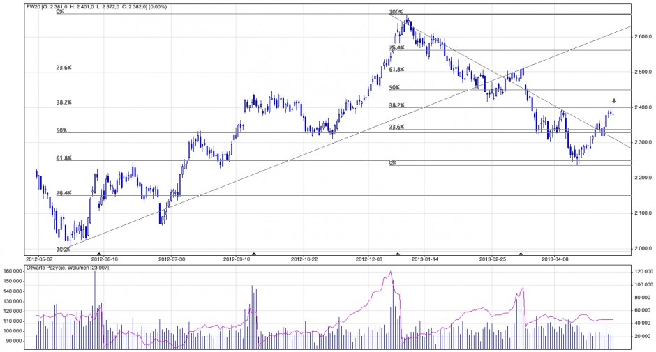 Analiza techniczna i prognozy dla kontraktó∑ terminowych na WIG20; Notowania dzienne; Kwiecień 2012 – maj 2013; Źródło: stooq.pl